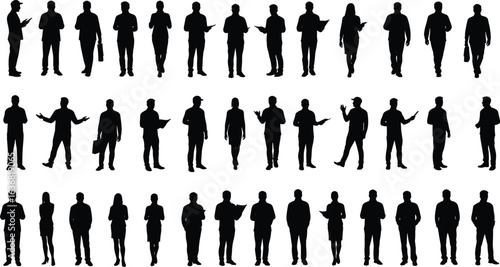 Silhouette collection of diverse business people standing, walking, and working in various poses, vector illustration for corporate, teamwork, leadership, and office projects