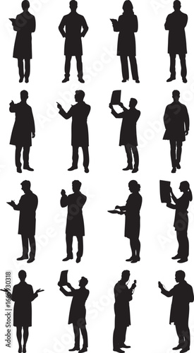 Silhouette collection of doctors and medical professionals in various poses and actions