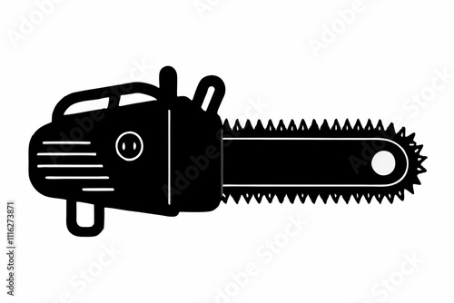 Silhouette Design of a Chainsaw with Sharp Blade Teeth and Ergonomic Handle in a Bold Minimalist Style