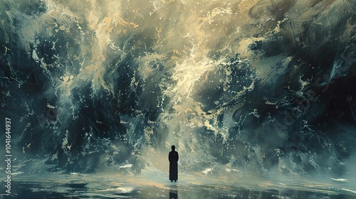 Silhouette Figure in a Dreamlike Abstract Landscape