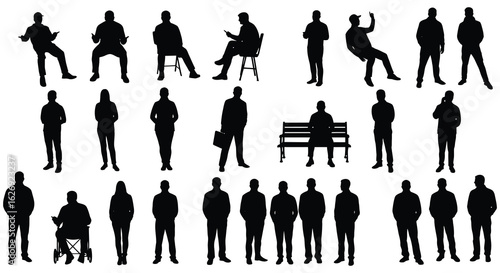 Silhouette Figures of People in Various Poses and Activities Isolated on White