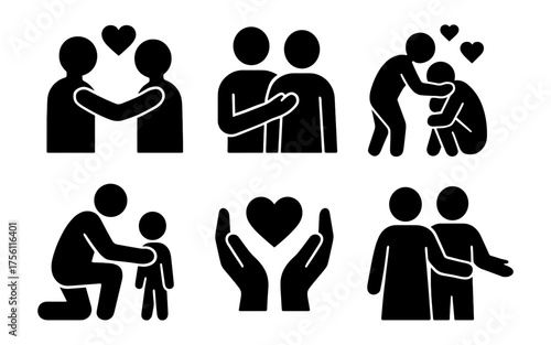 Silhouette icons depicting compassion, support, and friendship concepts