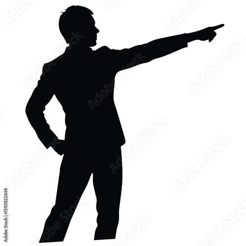 Silhouette Illustration of Man in Suit Pointing Direction Indicating Strategy or Vision