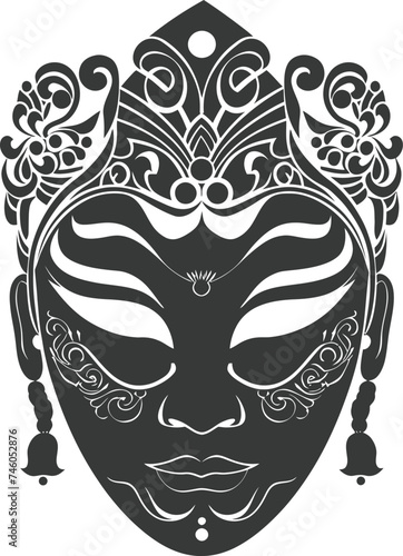 Silhouette Japanese Traditional Mask black color only