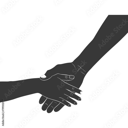 Silhouette Joining Hands holding in Harmony and Peace Between Races