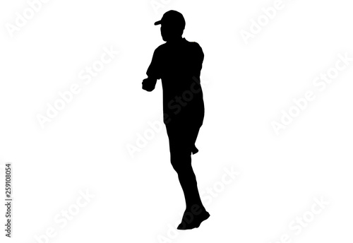 silhouette men run exercise for Health At area Stadium Outdoors on white background with clipping path.