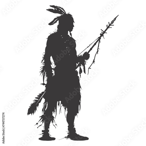 Silhouette native american man holding weapon black color only