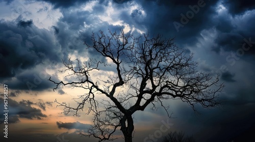 Silhouette of a Bare Tree Against a Dramatic Sky