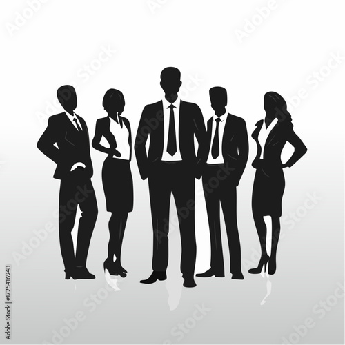 Silhouette of a business team of five people.