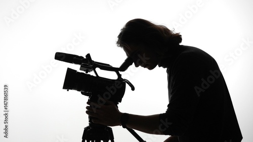 Silhouette of a Cameraperson Filming with a Professional Video Camera