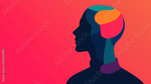 Silhouette of a head with colorful brain, abstract design on a vibrant background.