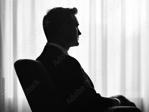 Silhouette of a Man in a Suit Sitting in a Chair.