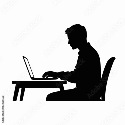 Silhouette of a Man Working on Laptop at Desk