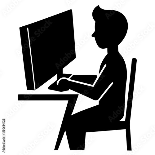 Silhouette of a person working at a computer