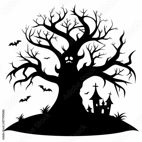 silhouette of a tree with roots,gothic tree for Halloween vector silhouette