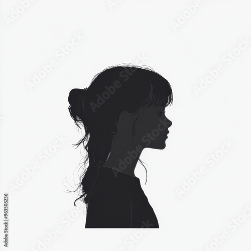 Silhouette of a woman in profile on white background