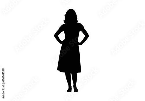 Silhouette of a Woman with Hands on Hips Wearing a Dress.