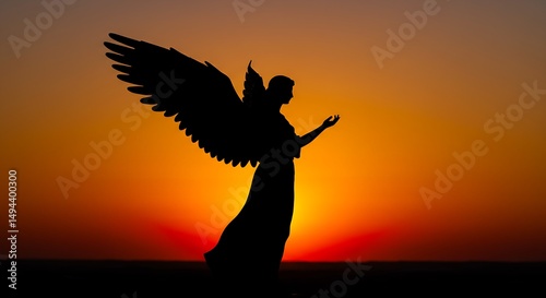 Silhouette of Angelic Figure at Sunset A Serene Spiritual Image