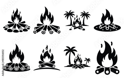 Silhouette of beach bonfire vector icon set collection. summer icons concept isolated on white, vector illustration