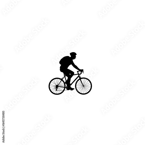 Silhouette of Cyclist on Road Bike Wearing Helmet and Backpack Active Lifestyle and Sports Illustration