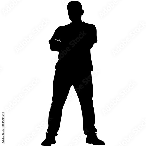 Silhouette of Man Standing with Arms Crossed Confident Pose Vector Illustration