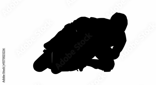 Silhouette of Motorcyclist Leaning into Turn – Dynamic Riding Vector on White Background