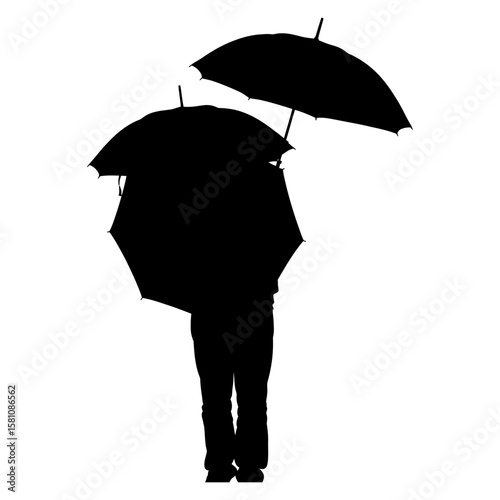 Silhouette of Person with Two Umbrellas for Rainy Weather Stock Image