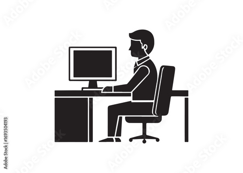 Silhouette of Person Working at Desk with Dual Monitors, Simple Icon, Business Concept