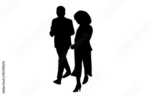 Silhouette of two professional workers Walking Together