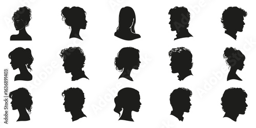 Silhouette Profile Collection Set. Diverse Human Silhouettes For Design Projects. Isolated Vector Illustration