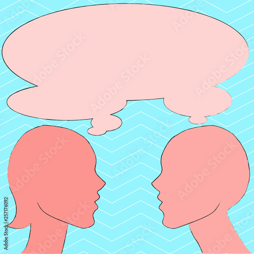 Silhouette Sideview Profile Image of Man and Woman with Shared Thought Bubble Design business concept Empty copy text for Web banners promotional material mock up template.