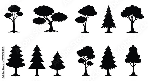 Silhouette Trees Collection Diverse Forest Elements for Design and Illustration Projects