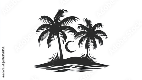 Silhouette tropical island with palms and crescent moon