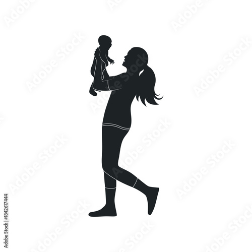 Silhouette vector illustration of a mother and her child celebrating Mother's Day