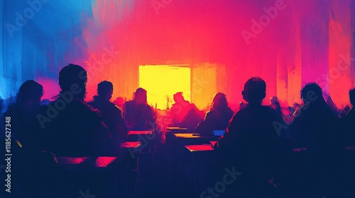 Silhouetted Figures in a Vibrant Classroom Setting