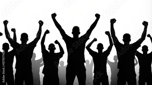 Silhouettes of angry men with raised arms black and white , silhouettes, men, anger, arms raised, black and white