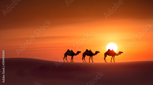 silhouettes of camels at sunset