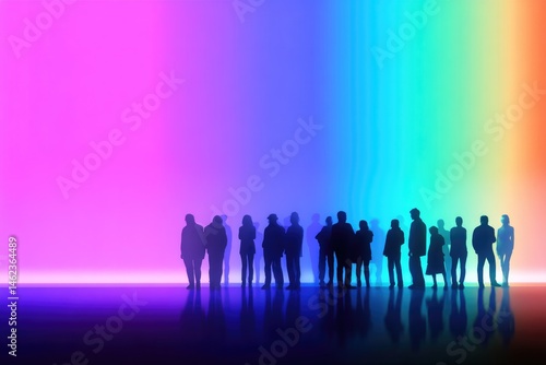 silhouettes of diverse individuals on vibrant neon gradient background symbolizing social disparity and diversity