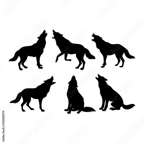 Silhouettes of Howling and Standing Wolves in Various Poses – Vector Wolf Graphics for Wildlife Art, Outdoor Decor, Nature Illustrations, Tribal Designs, and Animal Lover Projects