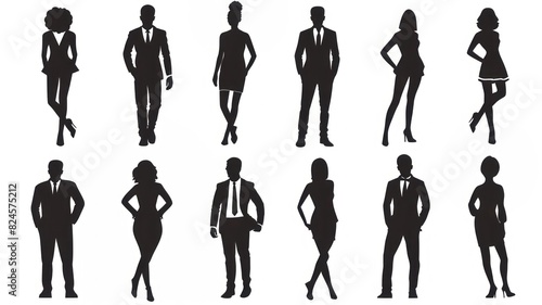silhouettes of men in business suits and women in dresses