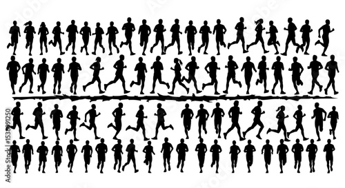 Silhouettes of People Running, Jogging, and Sprinting in Various Poses