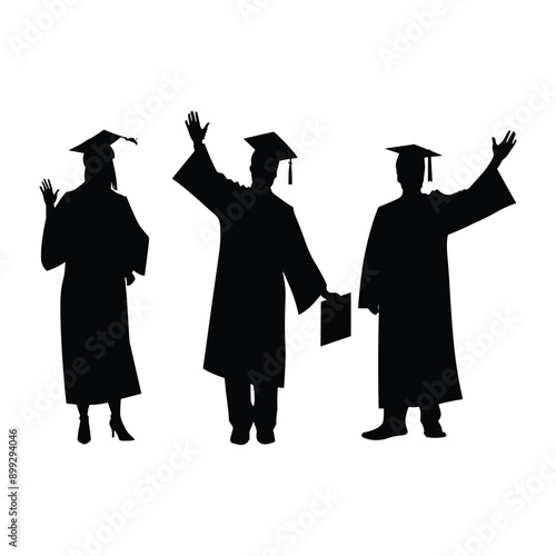 Silhouettes of three graduates celebrating their achievement.
