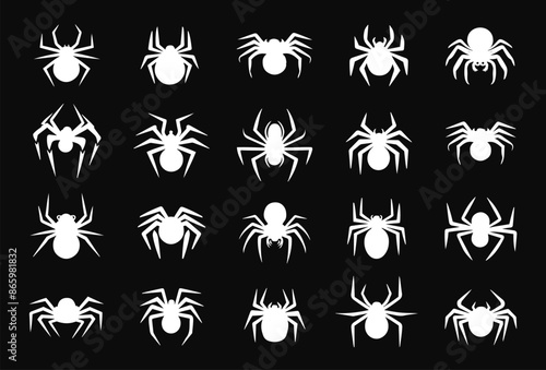 Silhouettes of unique spider variety. Different rare and common spider collections are isolated on a white background.