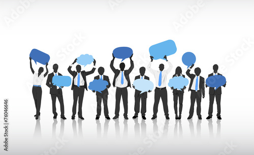 Silhouetts of Business People Holding Empty Speech Bubble