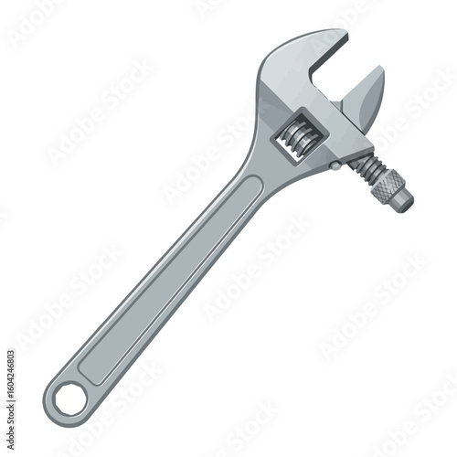 Silver Adjustable Wrench Tool on White Background