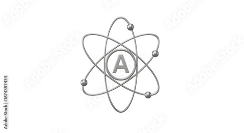 Silver Atom with Letter A on Black Background