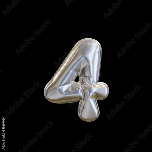 Silver Balloon Number 4, Realistic 3D Rendering