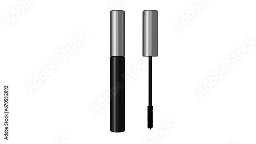 Silver black bottle of mascara and brush isolated on transparent and white background. Cosmetic concept. 3D render