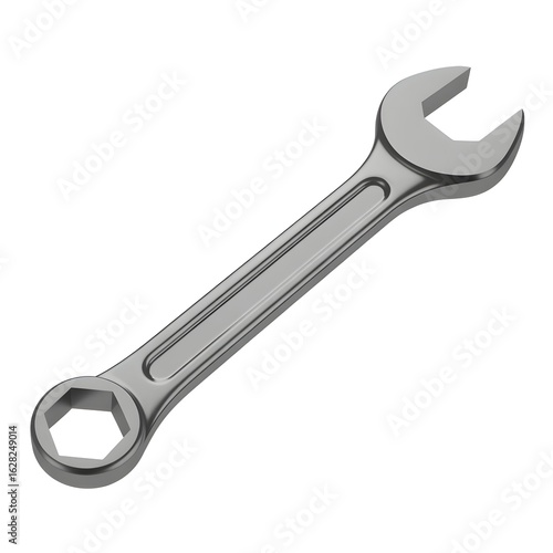 Silver Combination Wrench with Open-End and Box-End Heads, Durable Hand Tool Isolated on White