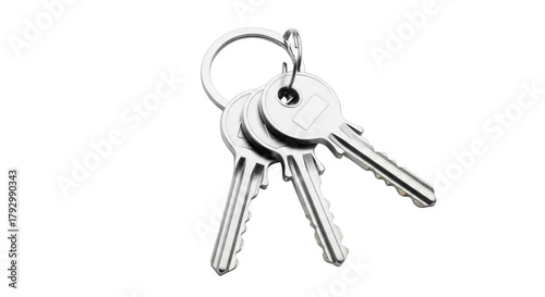 Silver keys on ring security access unlock metal object on transparent background